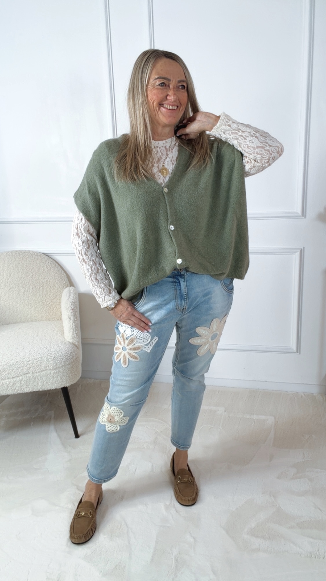 • Diese Oversize-Weste mit V-Ausschnitt und durchgehender Knopfleiste ist das perfekte Trend-Piece für die Frühlingssaison. Der lockere, lässige Schnitt sorgt für eine moderne Silhouette und bietet gleichzeitig angenehmen Tragekomfort. Durch die großzügige Passform lässt sich die Weste vielseitig kombinieren – ob über einer leichten Bluse, einem Basic-Shirt oder einem feinen Strickpullover.
